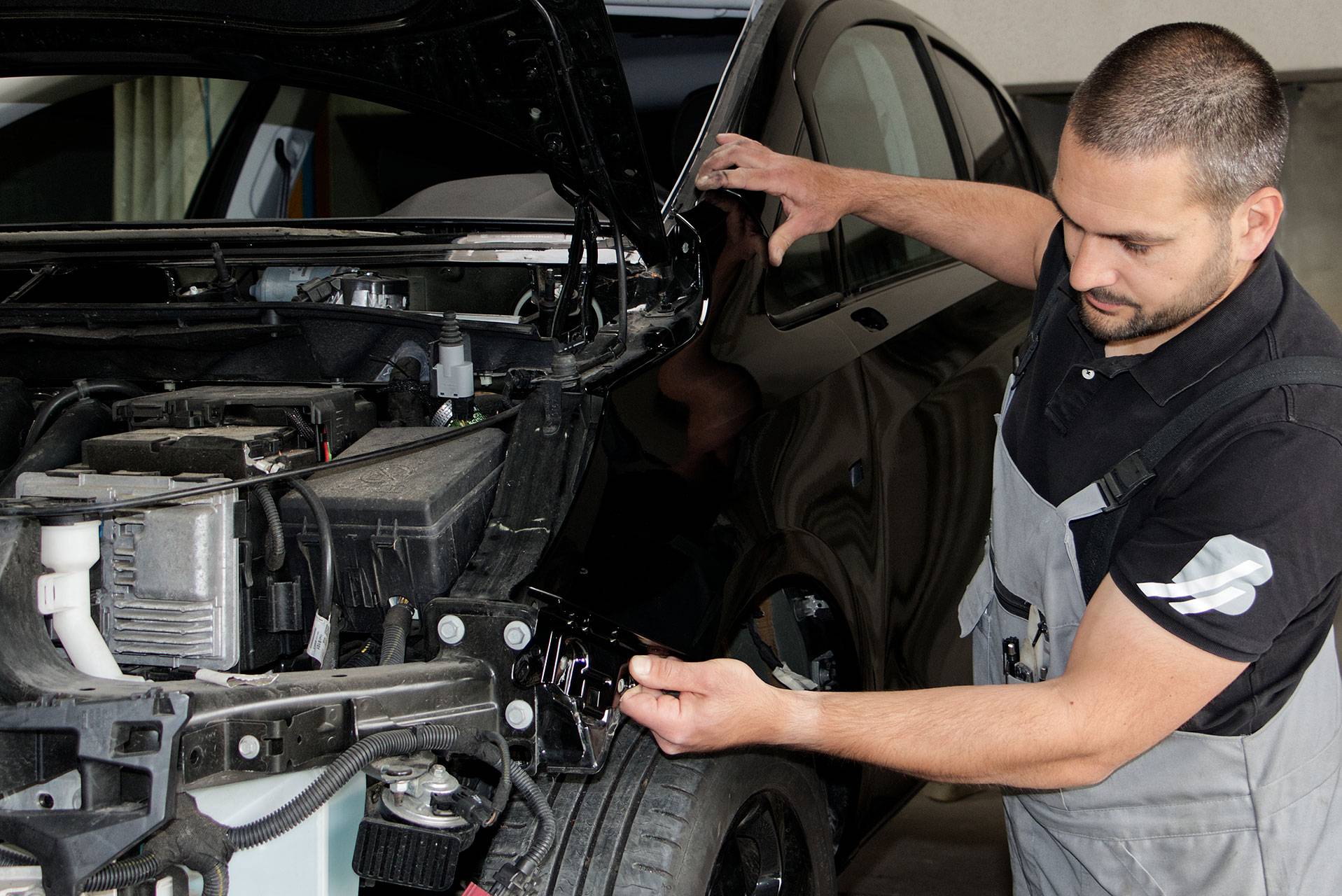 Die Arbeit an der Carrosserie umfasst ein breites Spektrum. Von massiven Eingriffen mit schwerem Gerät bis hin zu filigranen Ausbesserungsarbeiten bei Hagelschaden oder Parkschaden. Ob Wiederherstellung nach Unfall, Scheibenersatz oder Ausbeulen von Parkdellen – wir lassen Ihr Fahrzeug wie neu aussehen.
