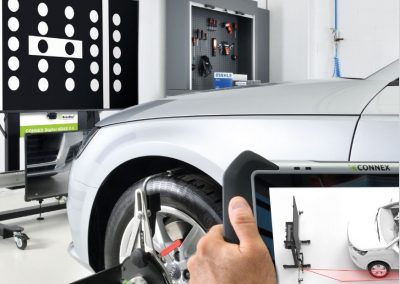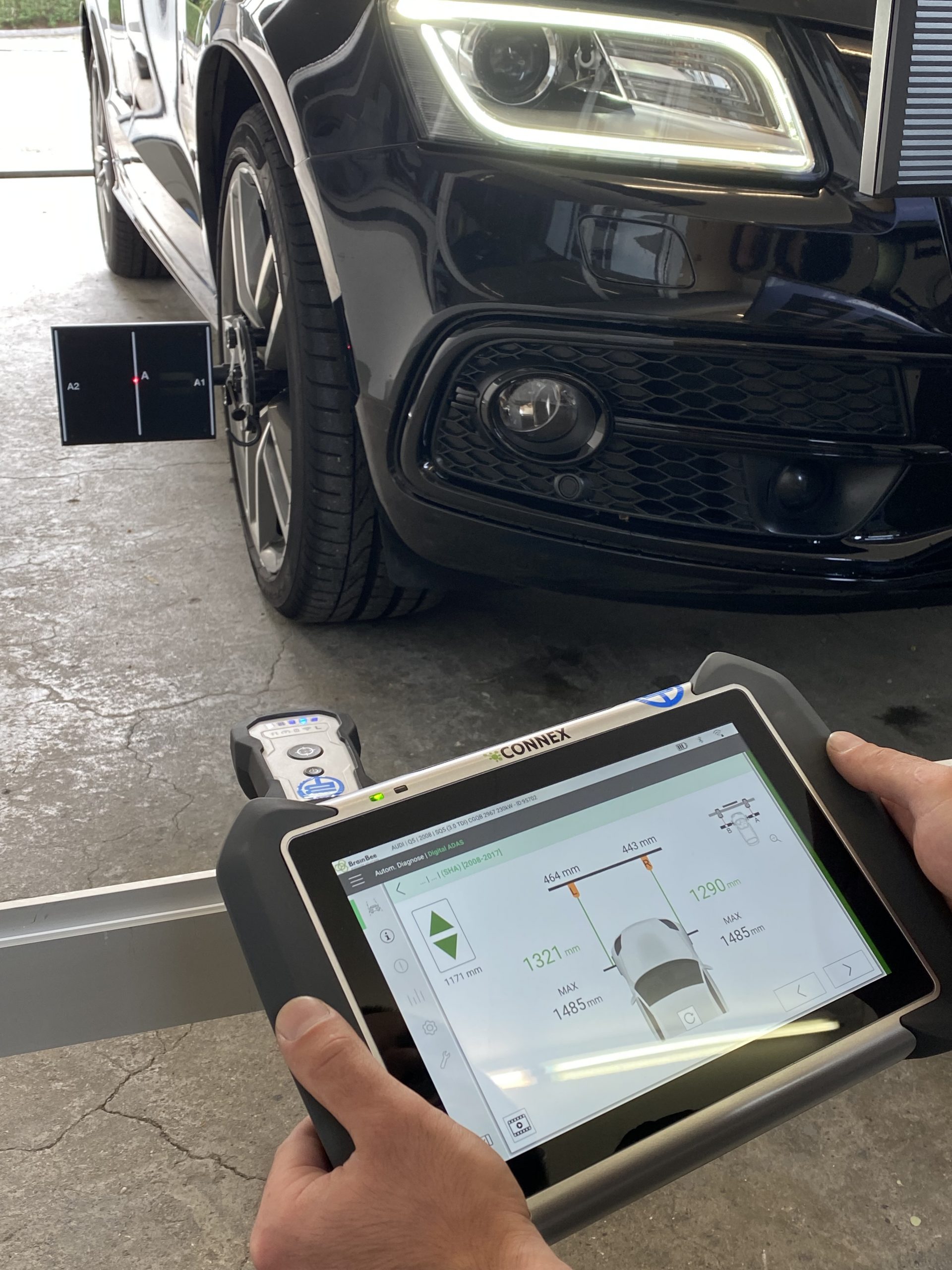 Wir haben in diese revolutionäre Technologie investiert, um unseren Kunden eine schnelle und präzise Kalibrierung anzubieten. Mit dem Einsatz künstlicher Intelligenz für die Fahrzeugkalibrierung und speziellen Laserdistanzmesser, die direkt mit dem Diagnosegerät verbunden sind, können alle Parameter der Fahrzeugausrichtung direkt erfasst werden und die Kalibrierung kann sofort durchgeführt werden. Die richtige Position wird gemäß den Herstellerangaben automatisch eingestellt.